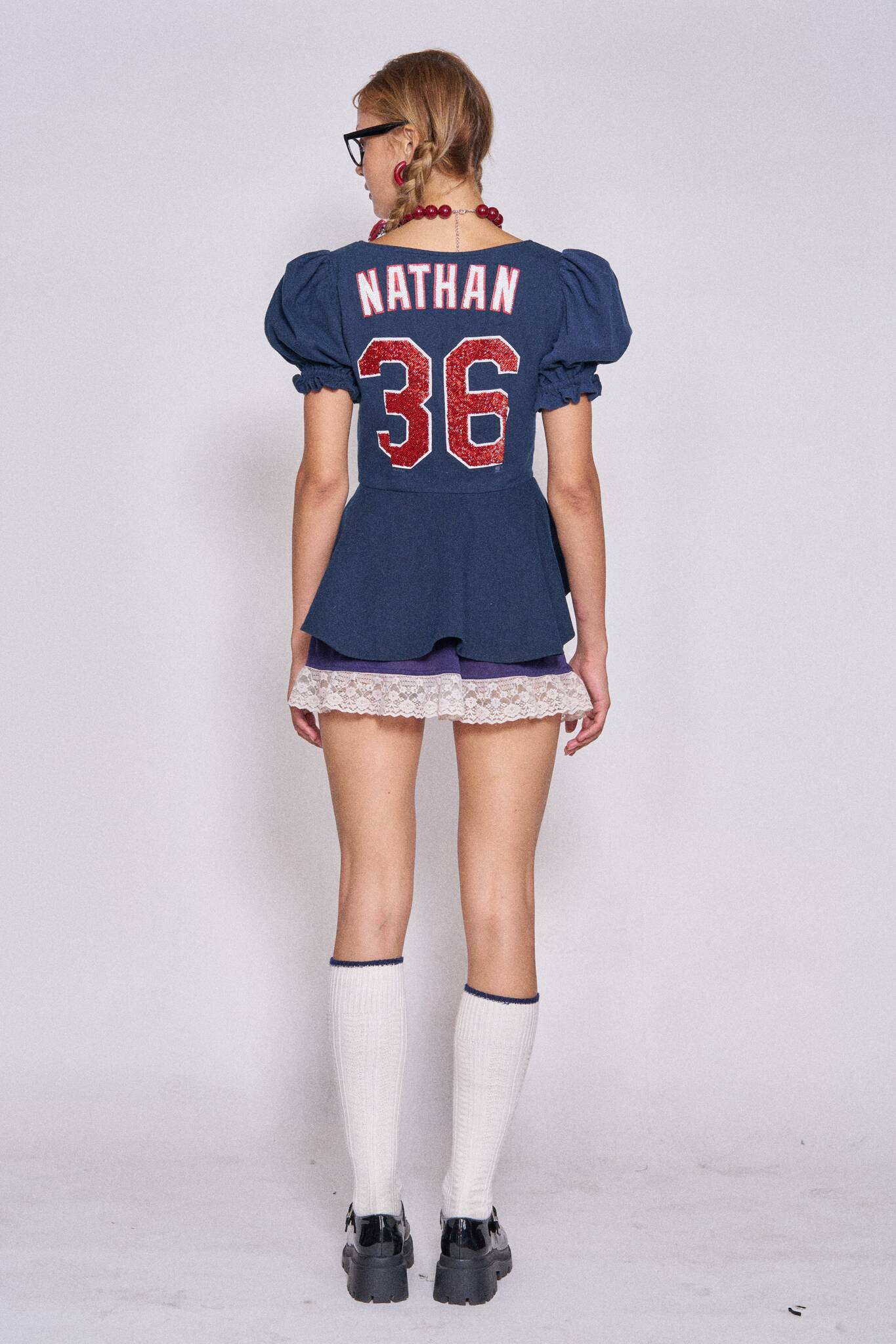 Each top is sewn together using three authentic, vintage tees from various official sports teams.